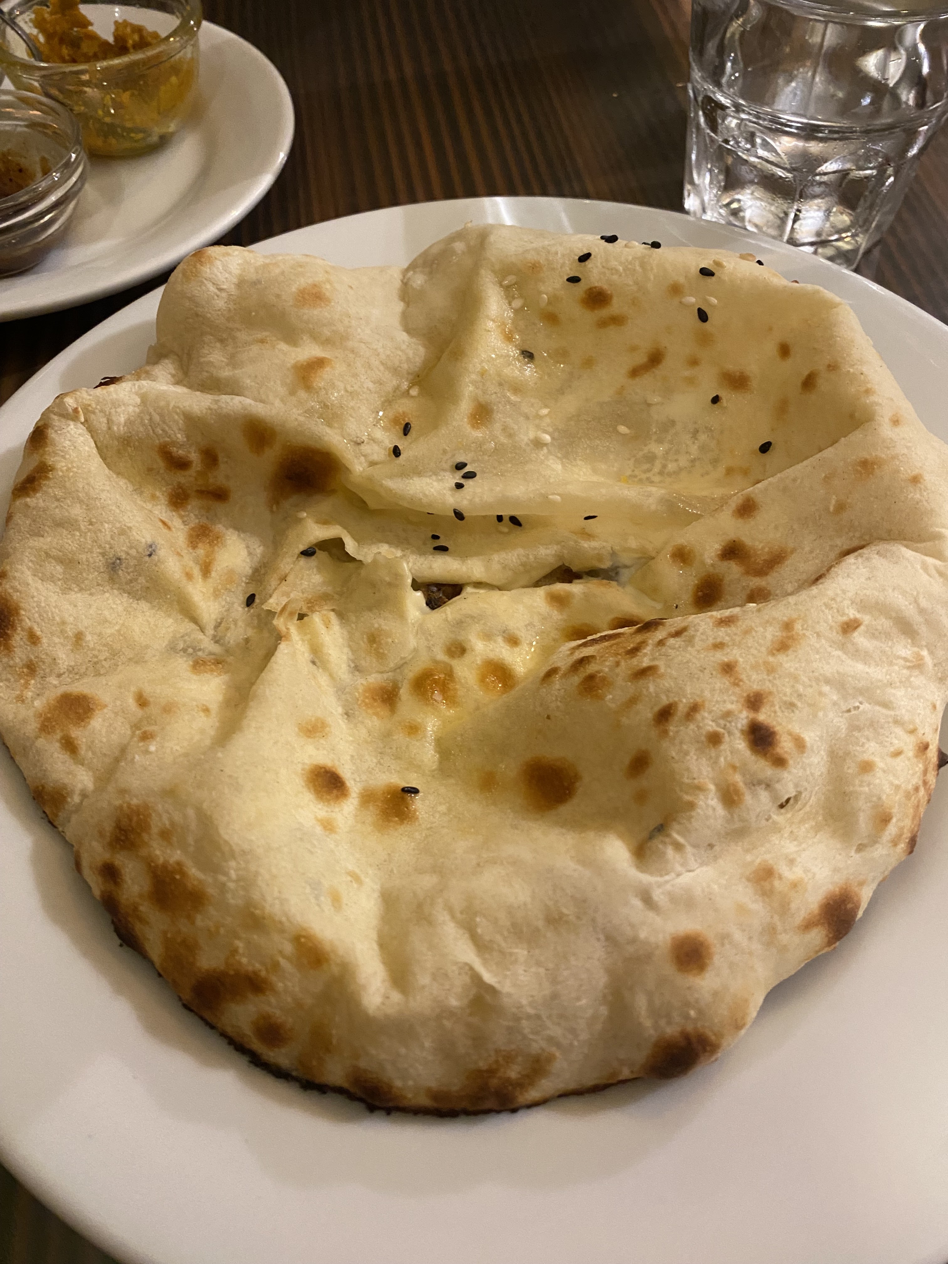 Nan au fromage et à l'ail délicieux, accueil et service efficace et sympathique
