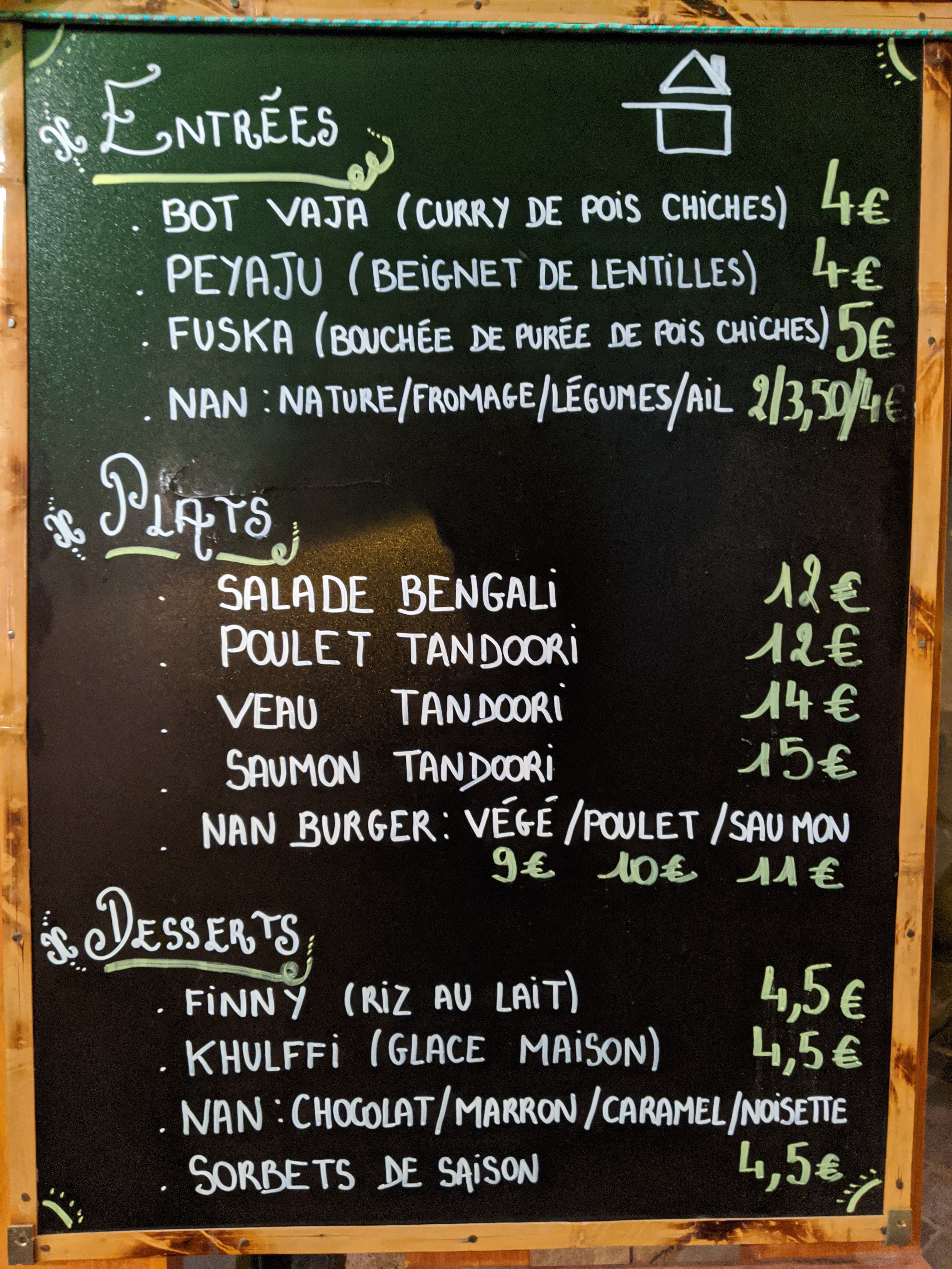 Cuisine Bangladesh. Ça vient d'ouvrir il y 6 mois. Possibilité de plat à emporter. Le lieu est moderne et l'accueil chaleureux.